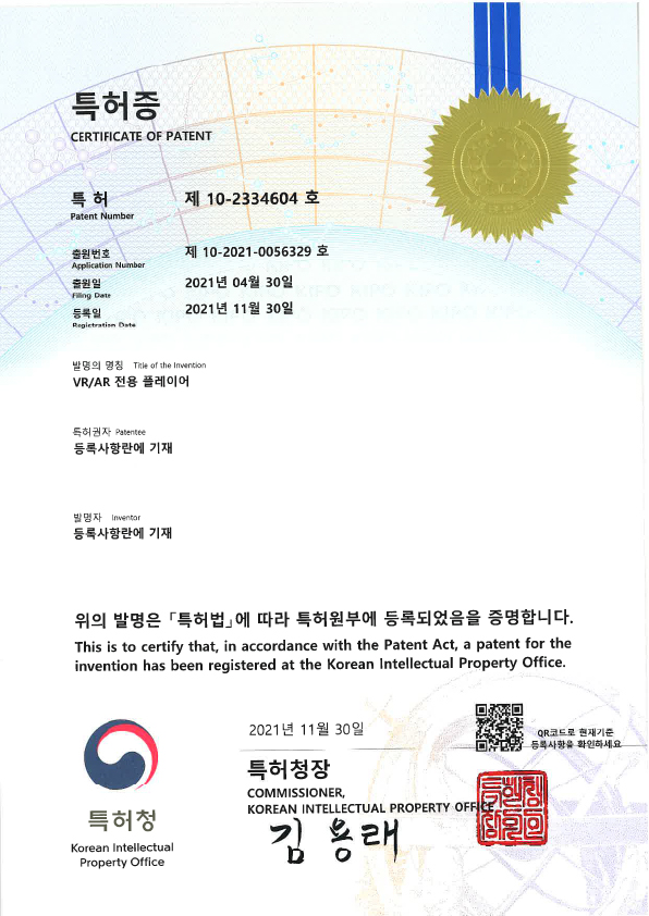 VR/ARÀü¿ë Ç÷¹ÀÌ¾î Æ¯ÇãÁõ